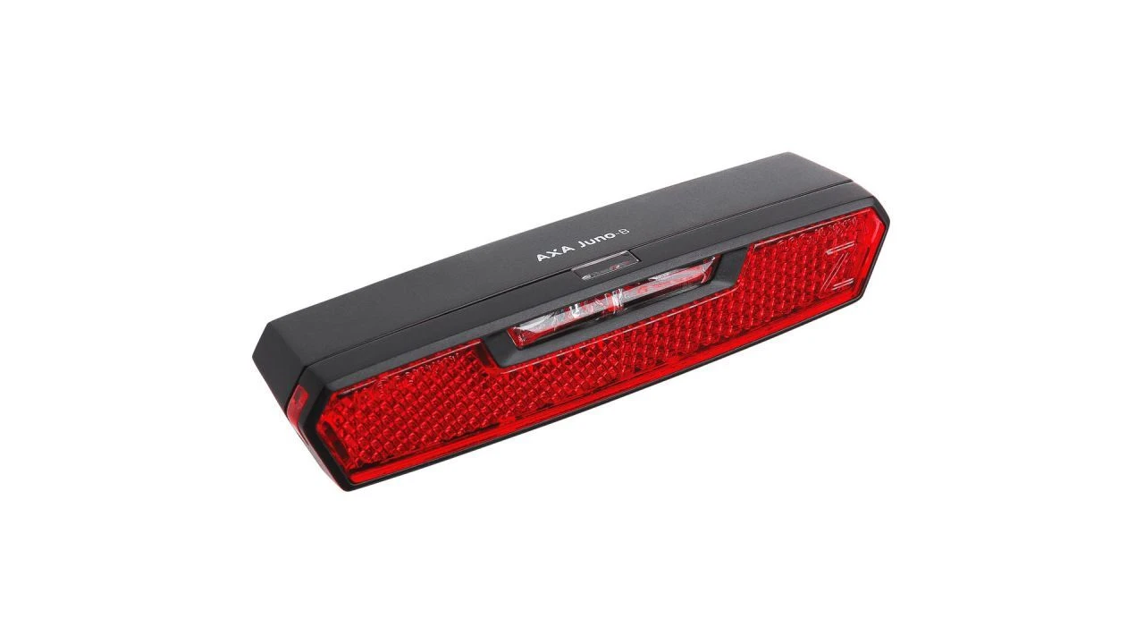 Das AXA Juno B ist ein Rücklicht, das dank seines intelligenten Designs auch seitlich sichtbar macht. Im Straßenverkehr bist du mit dem Rücklicht von AXA gut zu sehen, wenn sich Autos oder andere Radfahrer von hinten nähern oder an eine Kreuzung heranfahren, die du gerade quer passierst.<br><br>Das Rücklicht wird über einen Ein-/Aus-Schalter betätigt und kann in einem Montageabstand von 50 oder 80 mm montiert werden. Es funktioniert mit 2x AAA-Batterien, die im Lieferumfang enthalten sind. Die Lampe hat eine lange Akkulaufzeit und wenn sie sich dem Ende neigt, weist eine Batterieanzeige darauf hin. So kannst du immer gut planen und passende Batterien stets auf Vorrat haben. Die Batterien können problemlos ohne Werkzeug gewechselt werden.