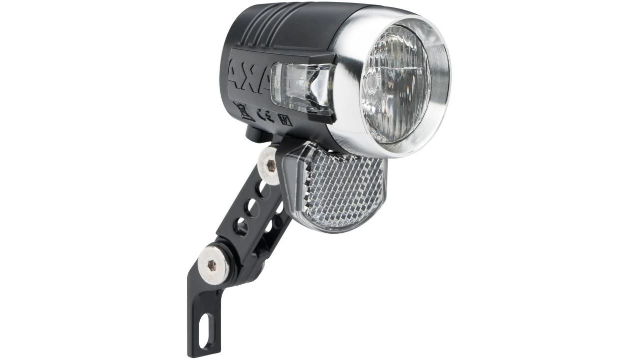 Kompakt und sportlich: So präsentiert sich der dynamobetriebene Scheinwerfer Blueline 50T von AXA. Er weist eine Lichtstärke von 50 Lux auf.<br><br>Der Scheinwerfer verfügt über eine Kombination aus einem integrierten Reflektor und einer optimalen Lichtverteilung. Da andere Verkehrsteilnehmer Sie so hervorragend bemerken und die Straße vor Ihnen gut beleuchtet ist, steigt die Sicherheit immens. Die Sichtweite durch den Lichtkegel beträgt übrigens 70 m, während andere das Licht bis zu einer Entfernung von 4 km wahrnehmen können.<br><br>Außerdem ist der Blueline 50T mit Tagfahrlicht ausgestattet. Darüber hinaus gibt es den Scheinwerfer als Steady Auto-Version auch mit einem automatischen Hell-Dunkel-Sensor. Zudem ermöglicht hier eine Standlicht-Funktion, dass das Licht im Stand noch bis zu 4 min lang weiter leuchtet.<br><br>Die robusten Stahlbügel des Scheinwerfers eignen sich für jeden Straßentypen. Die Lichtposition ist dabei variabel einstellbar. Beim Blueline 50 von AXA handelt es sich um einen kompakten und sportlichen dynamobetriebenen Scheinwerfer mit einer Lichtstärke von 50 Lux.<br><br>Der Scheinwerfer bietet eine Kombination aus einem integrierten Reflektor und einer optimalen Lichtverteilung. Auf diese Weise sehen andere Verkehrsteilnehmer Sie besser und die Straße vor Ihnen ist gut beleuchtet. Somit ist viel für die Sicherheit getan. Durch den Lichtkegel sieht man selbst 70 m weit und wird bis zu einer Entfernung von 4 km gesehen.<br><br>Optinal erhalten Sie die Leuchte als Steady Auto-Version. In dieser ist Blueline 50 mit einem automatischen Hell-Dunkel-Sensor und mit einer Standlicht-Funktion ausgestattet. Mit dieser Funktion scheint das Licht im Stand noch bis zu 4 m lang weiter.<br><br>Die robusten Stahlbügel des Scheinwerfers eignen sich für jeden Straßentypen, wobei die Lichtposition variabel einstellbar ist. Dabei lässt sich die Halterung aber auch entfernen oder an vorinstallierte Halterungen anpassen.