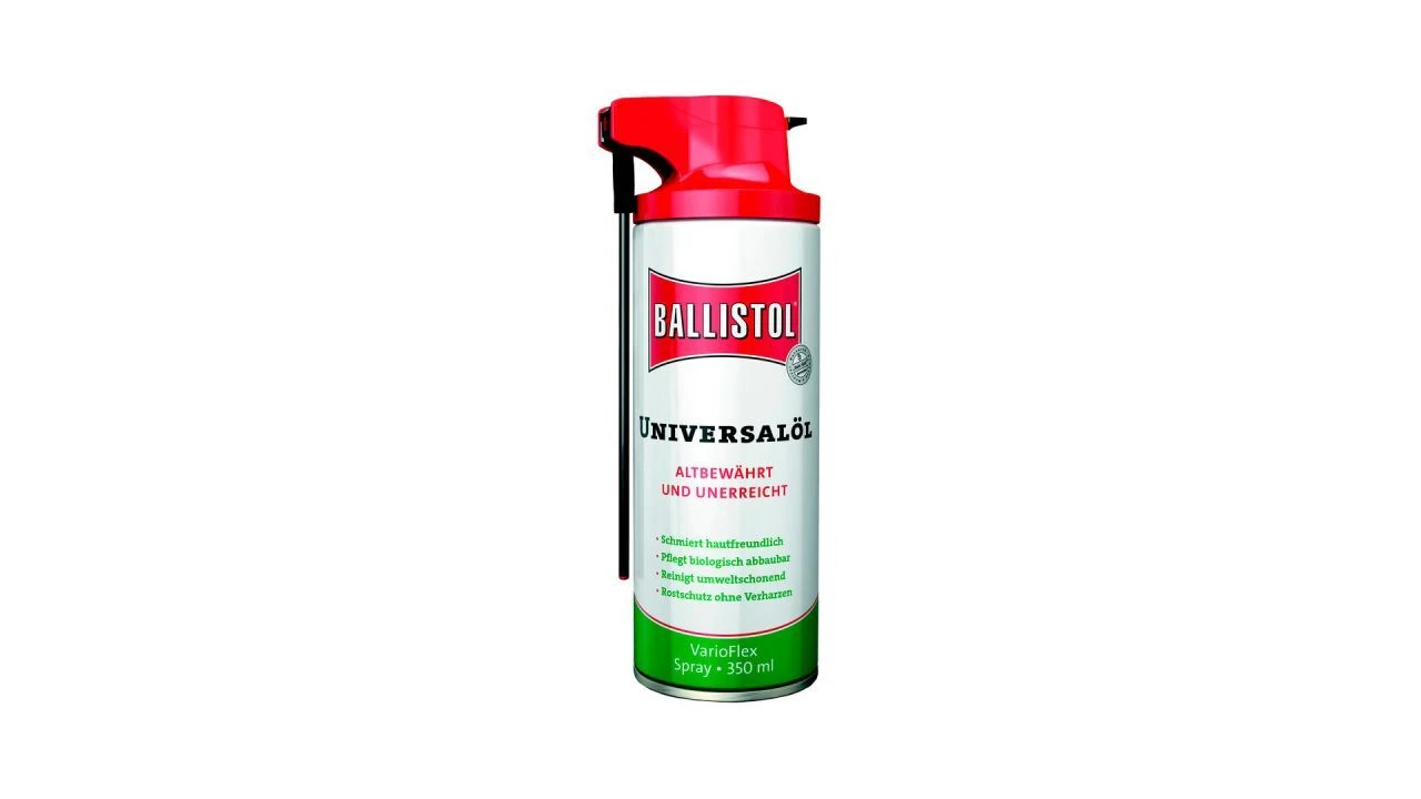 Das BALLISTOL Universalöl Vario Flex Spray der Alleskönner unter den Pflegemitteln. Es wird als Rostschutz, Schmieröl, Pflege- und Reinigungsmittel eingesetzt und glänzt dabei, seit als 115 Jahren mit vielen hervorragenden Eigenschaften.<br><br>Im Zuge, Produkte kontinuierlich weiterzuentwickeln und zu verbessern, hat BALLISTOL im wahrsten Sinne des Wortes um die Ecke gedacht. Das innovative Vario Flex Spray hat einen flexiblen Sprühschlauch, der sich individuell verbiegen und jede verborgene Ecke erreichen lässt.<br>Der VarioFlex-Sprühkopf bietet Ihnen viele Vorteile: <br><br>Variabel: Nie war es einfacher von Flächenstrahl (Spray) auf Punktstrahl (Stream) umzustellen. Mit einem kurzen Handgriff klappen Sie den Kapillarschlauch nach unten und ein gleichmäßiges Sprühbild bedeckt Flächen mit Universalöl. Ebenso geschwind ist der Sprühkopf auf Punktstrahl umgestellt, um einzelne Spotts zu setzen.<br><br>Flexibel: Aus dem Kapillarrohr wurde ein Kapillarschlauch mit Memory-Effekt. Sie verbiegen einfach den Schlauch und schon erreichen Sie abgelegene Ecken und Winkel. <br><br>Sparsam: Die große Auslösefläche erleichtert das Dosieren, auch mit Handschuhen. Punktgenau, soviel wie nötig und trotzdem die bewährte Ballistol-Wirkung. Wenig hilft bei uns viel. <br><br>BALLISTOL Universalöl Vario Flex Spray ist extrem kriechfähig, gleitaktiv, verharzt nicht, biologisch vollständig abbaubar, ebensmittelecht, hautverträglich, umweltgerecht und wirkt desinfizierend.<br><br>Es gibt viele praktische Anwendungsmöglichkeiten und stets werden neue entdeckt. Nutzen auch Sie die Vorteile des originalen BALLISTOL Universalöl.
