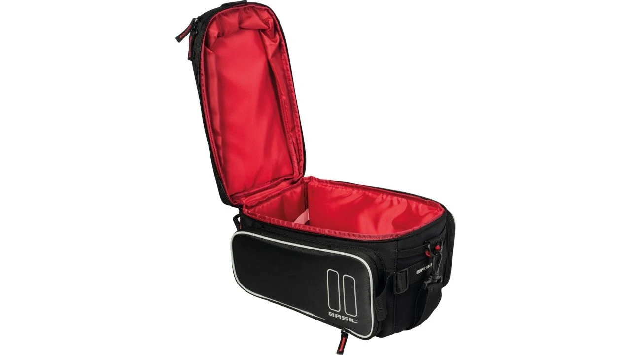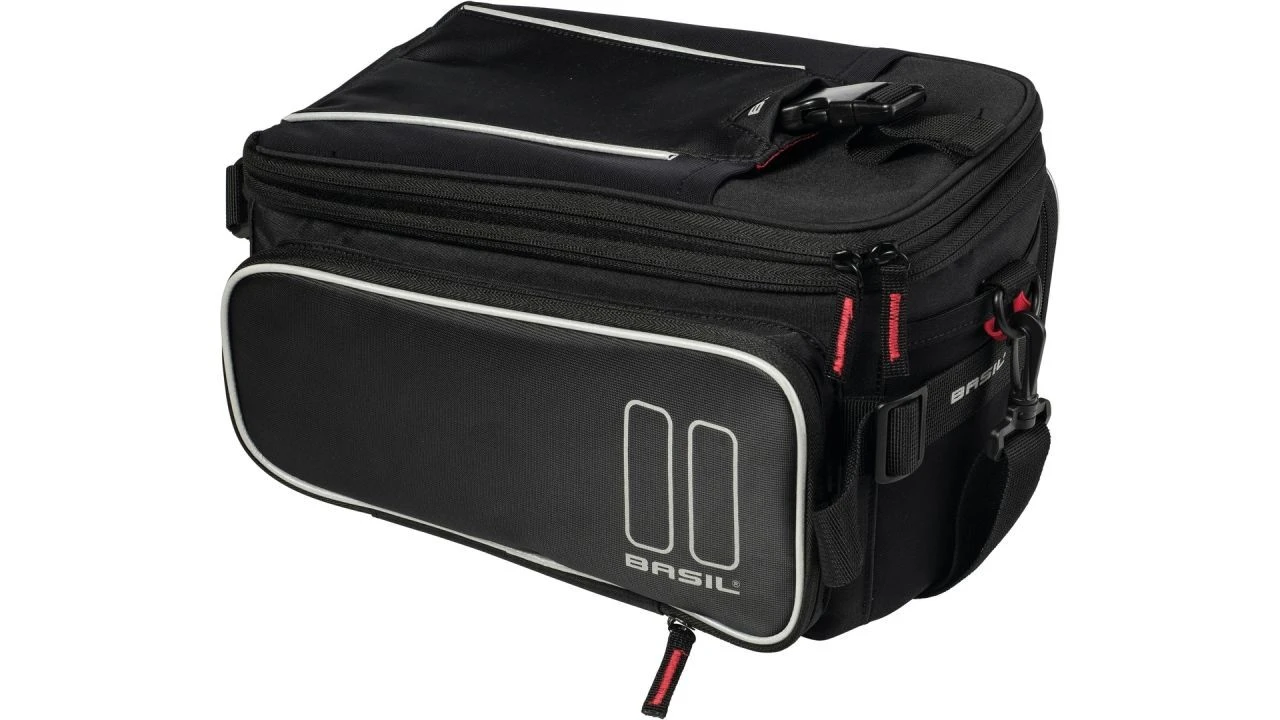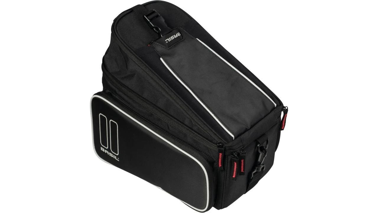 Bei der Sport Design Trunkbag handelt es sich um eine vielseitige Gepäckträgertasche, die sich sowohl für herkömmliche Fahrräder als auch für E-Bikes eignet. Diese Fahrradtasche stellt für jeden, der gerne lange Fahrradfahrten absolviert, einen Gewinn dar. In ihr lässt sich so einiges an Sachen wie zum Beispiel Trinkflaschen oder eine Fahrradkarte mitnehmen. <br><br>Natürlich bietet die Tasche auch einen optimalen Schutz für zum Beispiel ein Smartphone. Damit verhindern Sie, dass dieses aus Ihrer Hosen- oder Rocktasche fällt. Mit einem Volumen von 7 bis 12 l gibt es auf jeden Fall genug Platz für das Nötigste. Die Außenseite der Tasche ist aus wasserabweisendem Polyester gefertigt, wobei eine stabile Innenfütterung für die Qualität dieser Fahrradtasche spricht. <br><br>Die Tasche verfügt über diverse Fächer und die erweiterbaren Seitenfächer besitzen einen Reißverschluss. Das ist sehr praktisch, wenn man die Übersicht über seine Sachen bewahren will. Die Gepäckträgertasche hat darüber hinaus sowohl einen Handgriff als auch einen abnehmbaren Schultergurt. Sie lässt sich somit leicht überall hin mitnehmen. <br>Ferner sorgt das reflektierende Material dafür, dass man stets gut sichtbar ist. Darüber hinaus hat man die Möglichkeit, LED-Beleuchtung am Gepäckträger zu befestigen.