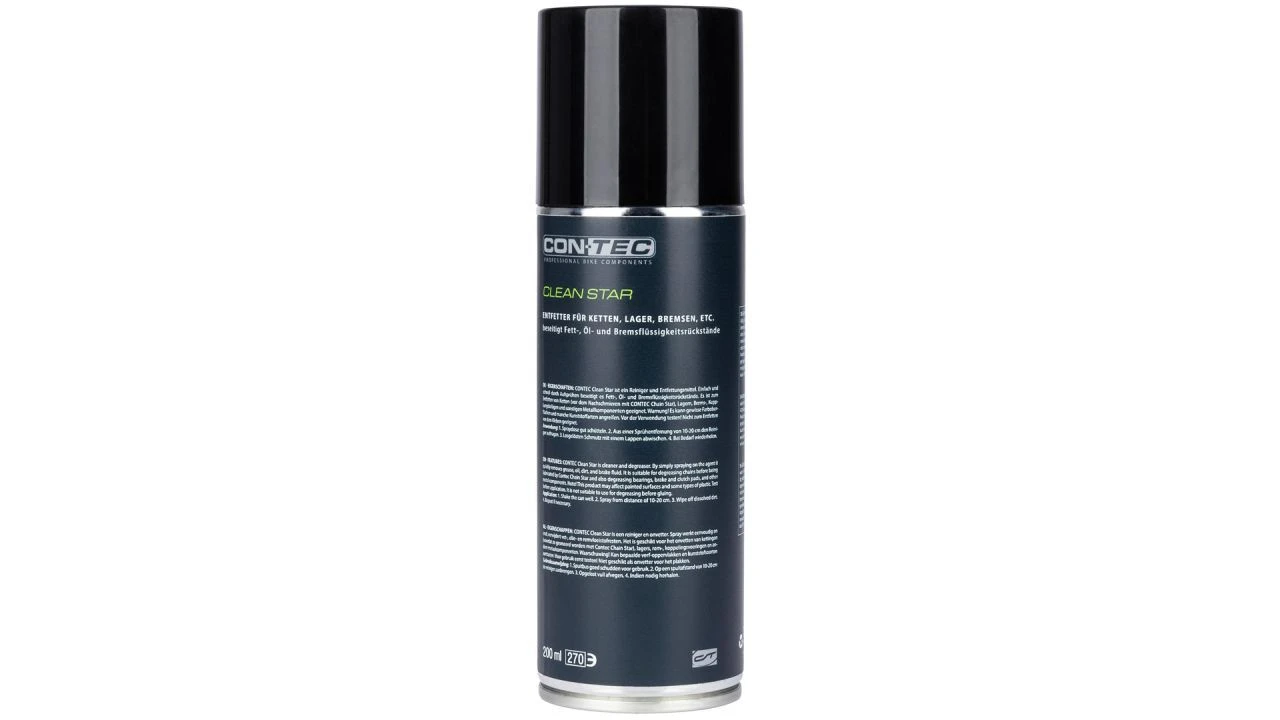 Entfetten ist wichtig für ein sauberes, funktionsfähiges Fahrrad. Der CONTEC Entfetter Clean Star befreit Fahrradkette und Lager von Fett-, Öl- und Bremsflüssigkeitsrückständen. Einfach aufsprühen.<br><br>Auch für Brems- und Kupplungsbelägen sowie alle weiteren Metallkomponenten eignet sich das Produkt in der Spraydose mit einem Inhalt von 200 ml. Nach dem Säubern mit dem Kettenreiniger empfiehlt sich ein Nachschmieren mit Chain Star. Der hochwertige CONTEC Entfetter gehört zu jeder guten Fahrrad-Ausstattung.