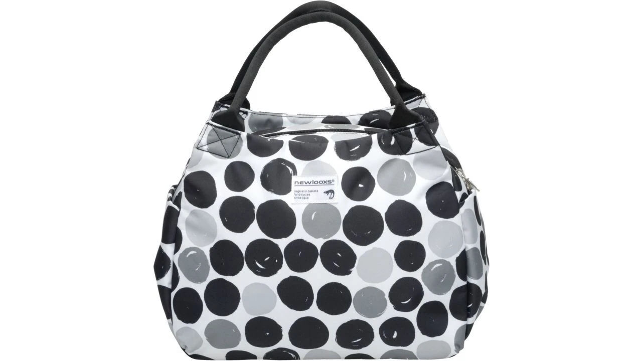 Bei der Tosca Midi von NEW LOOXS handelt es sich um eine fröhliche und modische Handtasche für das Fahrrad. <br>Aus wasserabweisendem Polyester gefertigt, bietet die Fahrradtasche ein Hauptfach sowie eine zusätzliche Innen- und Vordertasche mit Reißverschluss. Somit können Sie alles, was Sie brauchen, auf dem Fahrrad mitnehmen. <br><br>Die Haken für die Befestigung am Gepäckträger werden nach Gebrauch abgedeckt, wodurch die Tosca Midi nicht mehr als Fahrradtasche erkennbar ist.<br>Dank ihrer langen Griffe lässt sich die Tasche auch praktisch auf der Schulter tragen.