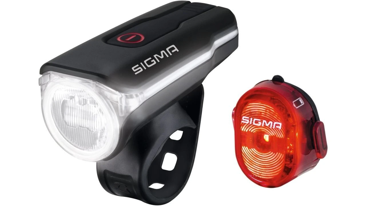 Der Aura 60 Lux USB Scheinwerfer von SIGMA SPORT wirft sein 60 Lux helles und harmonisches Lichtbild bis zu einer Entfernung von rund 70 Metern auf die Fahrbahn. Gleichzeitig sorgt der Light Guide, der herumführende Lichtstreifen für seitliche Sichtbarkeit. <br><br>Der LED-Scheinwerfer schafft ein homogenes Lichtfeld im Nah- und Fernbereich vorm Fahrrad sowie an den Seiten, ohne dabei andere Verkehrsteilnehmer zu blenden. Mit den Funktionen eignet sich der spritzwassergeschützte und StVZO-zugelassene Scheinwerfer sowohl für sportliche Fahrer als auch für Pendler, die täglich unterwegs sind. Seine drei Leuchtmodi 60 Lux, 30 Lux und 18 Lux im Eco-Modus bieten für jede Situation die richtige Helligkeit: vom sparsamen Betrieb im erleuchteten Stadtverkehr bis zum vollen Einsatz abends abseits beleuchteter Pisten. Die Leuchtdauer beträgt je nach Modus zwischen 4 und bis zu 10 Stunden. Der integrierte Lithium-Ionen-Akku lässt sich über das mitgelieferte Micro-USB-Kabel in maximal 3,5 Stunden wieder aufladen.<br><br>Die praktische Silikon-Lenkerhalterung ist fest mit dem Akku-Scheinwerfer verbunden und garantiert eine einfache und passgenaue Befestigung an jedem Fahrradlenker. Zudem ist er auch mit anderen SIGMA-Haltersystemen kompatibel, wie etwa dem Screw-Bracket und der Universal-Helmhalterung.<br><br>Klein, kompakt und wiederaufladbar ist dazu ebenfalls das Akku-LED-Rücklicht Nugget II. Wenn es mit den mitgelieferten Gummiringen werkzeugfrei an der Sattelstütze montiert ist, strahlt es bis zu 400 m nach hinten und an den Seiten ab. Das Rücklicht ist spritzwassergeschützt, wiegt nur 24 g und leuchtet 6 Stunden. Der Lithium-Ionen-Akku wird in zwei Stunden über die integrierte Micro-USB-Ladefunktion wieder aufgeladen. Zugelassen nach Straßenverkehrs-Zulassungsordnung (StVZO).